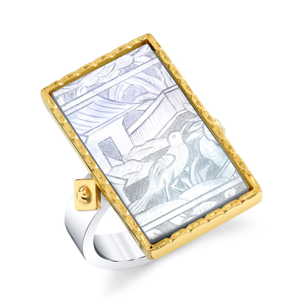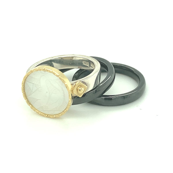 Antique Mother-of-Pearl Gaming Counter Gold & Silver Ring with Ceramic Bands