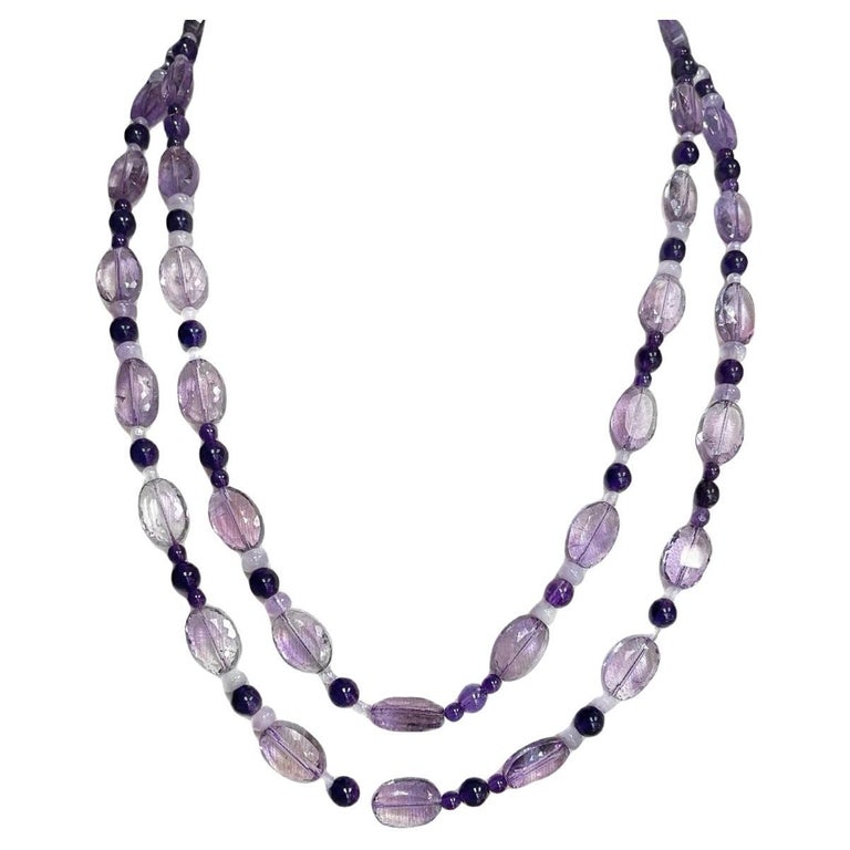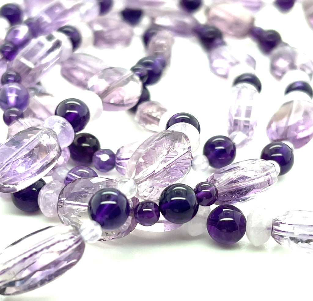 Rose de France, Amethyst and Kunzite Beaded Necklace, 46 Inches Long