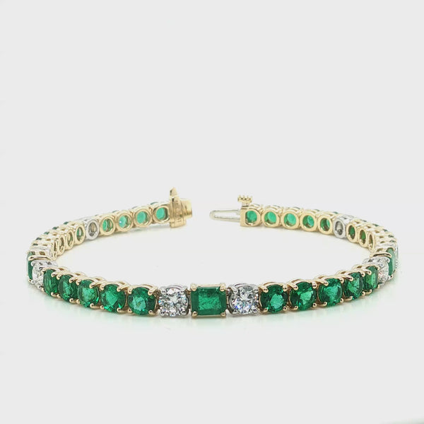 8.90 Carats Total Emerald and and Diamond Tennis Bracelet in Gold and Platinum