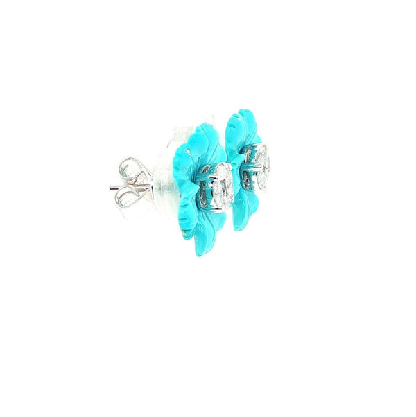 18k White Gold Diamond Stud Earrings with Turquoise Flower Jackets, 5.5ct