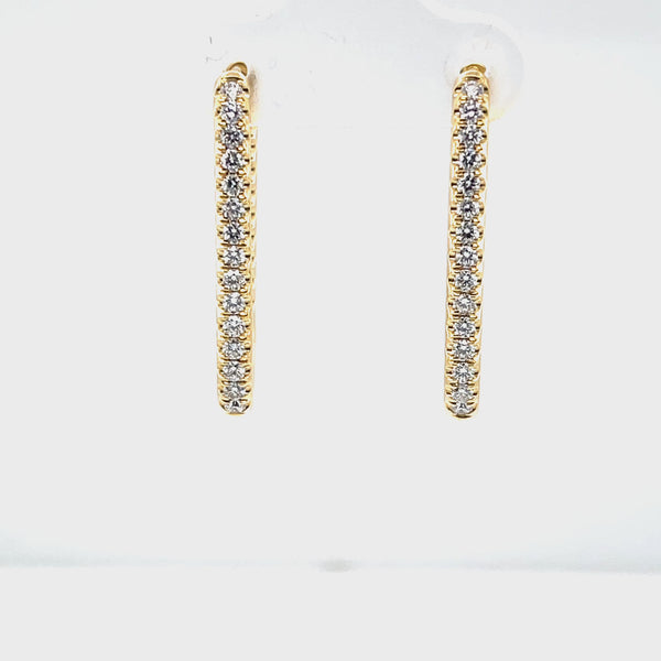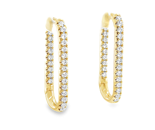 Diamond and 18k Yellow Gold Inside-Out Elongated Hoop Earrings, .78 Carat Total