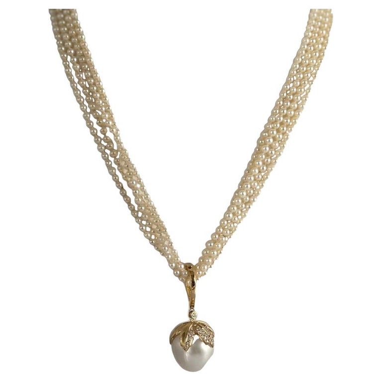 16mm South Sea Pearl and Diamond Pendant with Double Strand Pearl Necklace