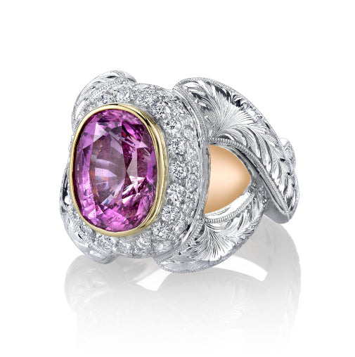 Unheated 5.73 Carat Pink Sapphire 'GIA' Diamond, Gold Engagement Cocktail Ring