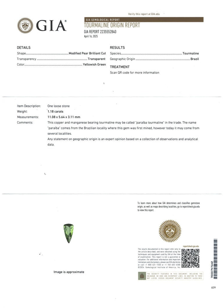 Pear shaped Paraiba tourmaline, 11.08 x 5.64 x 3.11mm, 1.18 carats