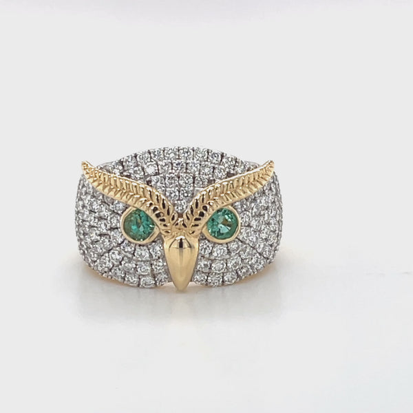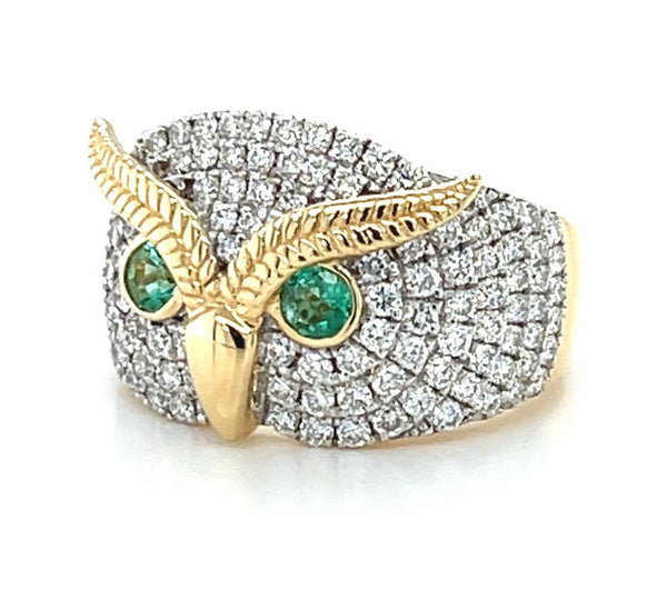 Emerald and Diamond "Owl" Band Ring in 18k Yellow Gold