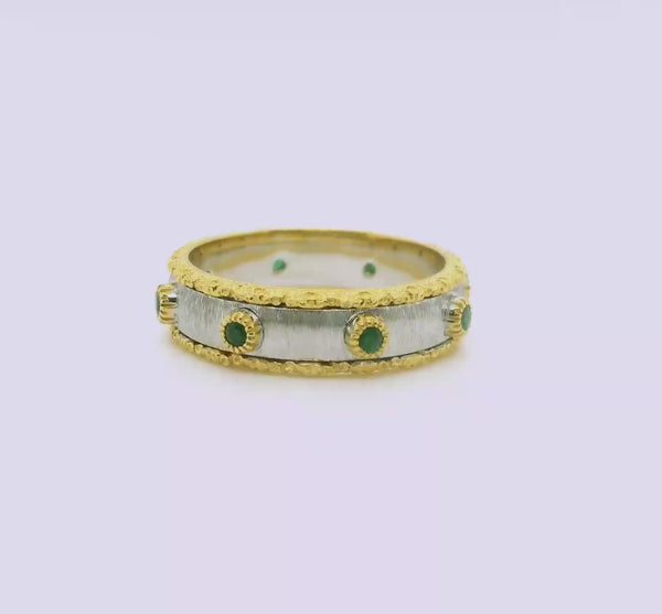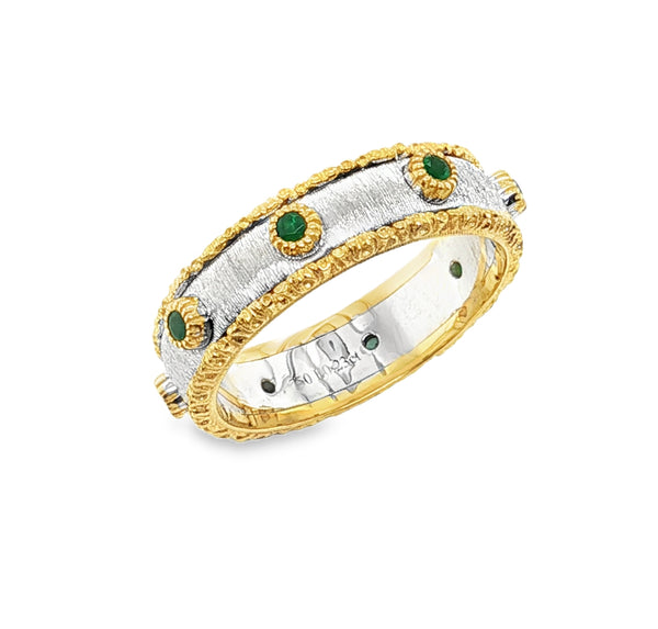Emerald Band Ring in 18k Yellow and White Gold, Florentine Finish