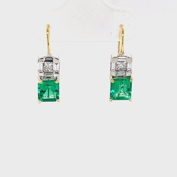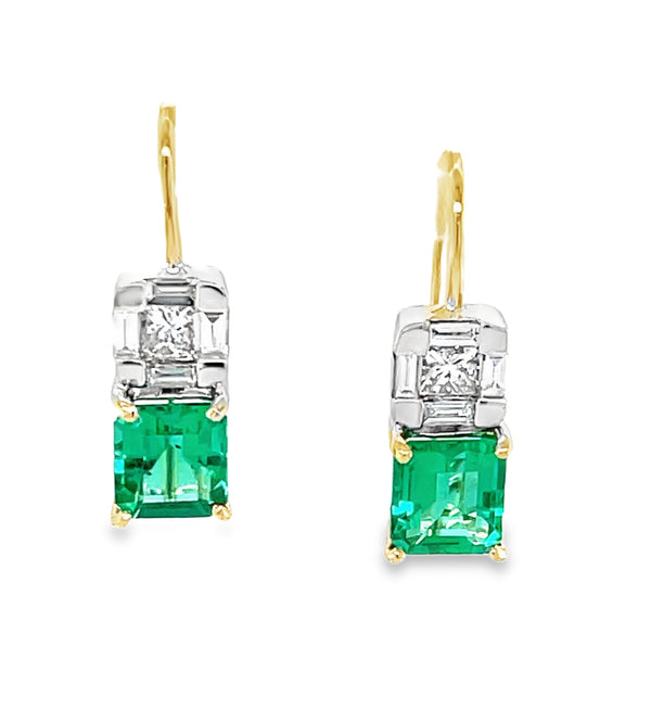 Emerald and Diamond Drop Earrings in 18k White and Yellow Gold, 1.39 Carats
