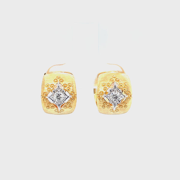 Florentine Diamond Hoop Earrings in Yellow and White Gold