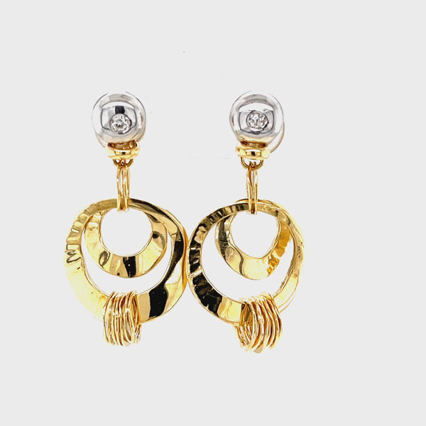 Orlando Orlandini Hammered Circle Dangle Earrings in 18k White and Yellow Gold