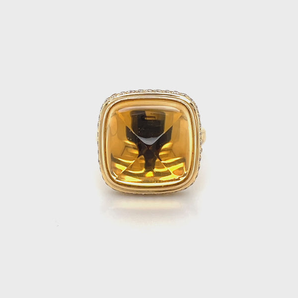 17 Carat Citrine Cabochon, Diamond and Yellow Sapphire Ring in 18k Yellow Gold