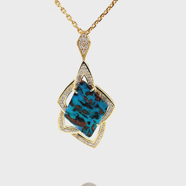 15.67 Carat Boulder Opal and Diamond Retro Style Pendant in 18k Yellow Gold