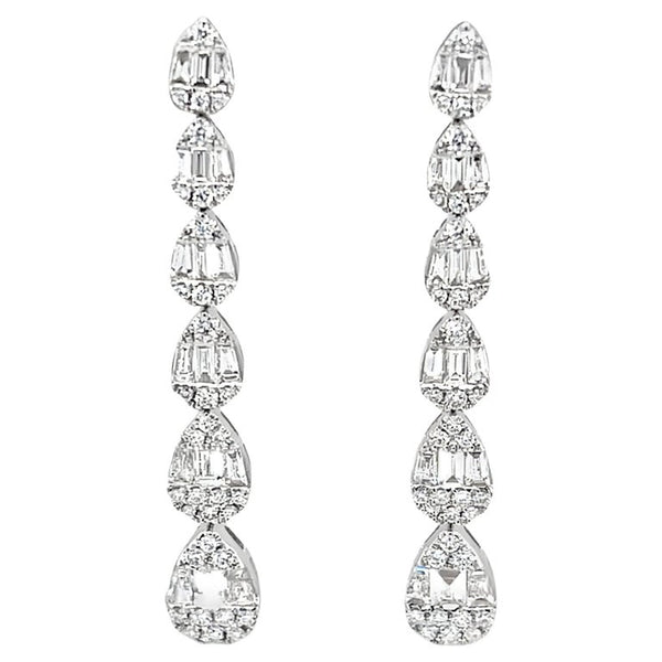 2.03 Carats Total Diamond Waterfall Dangle Earrings in 18k White Gold
