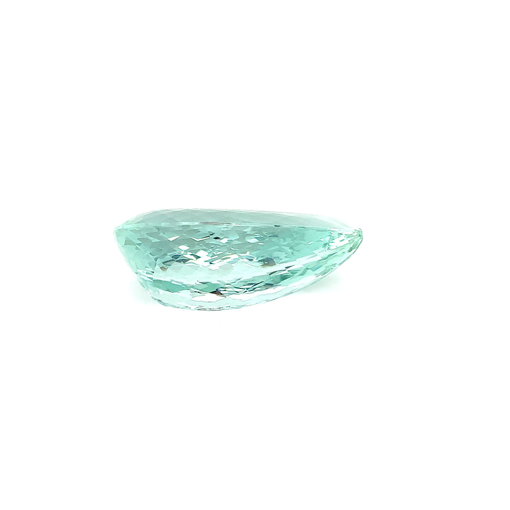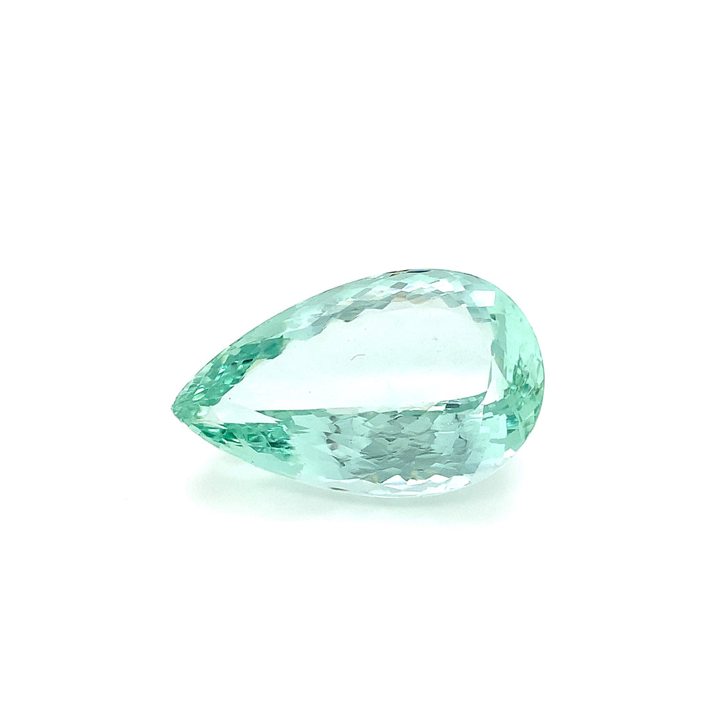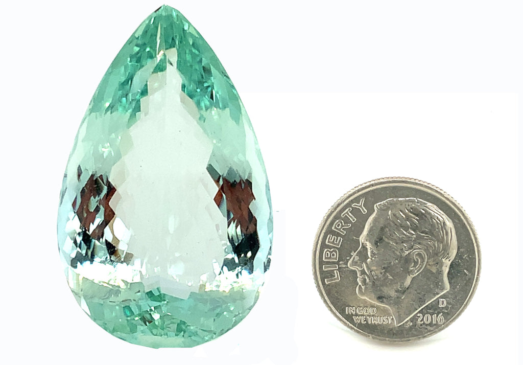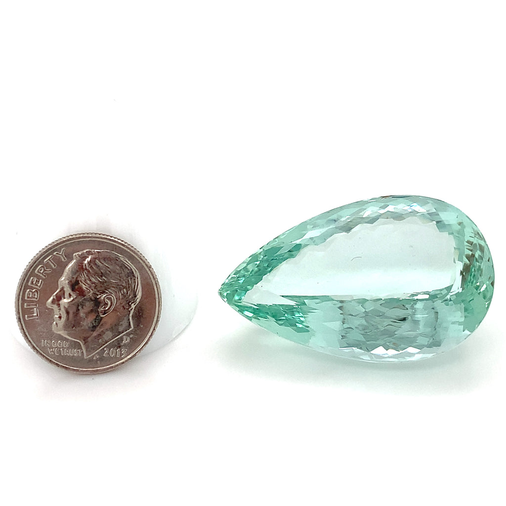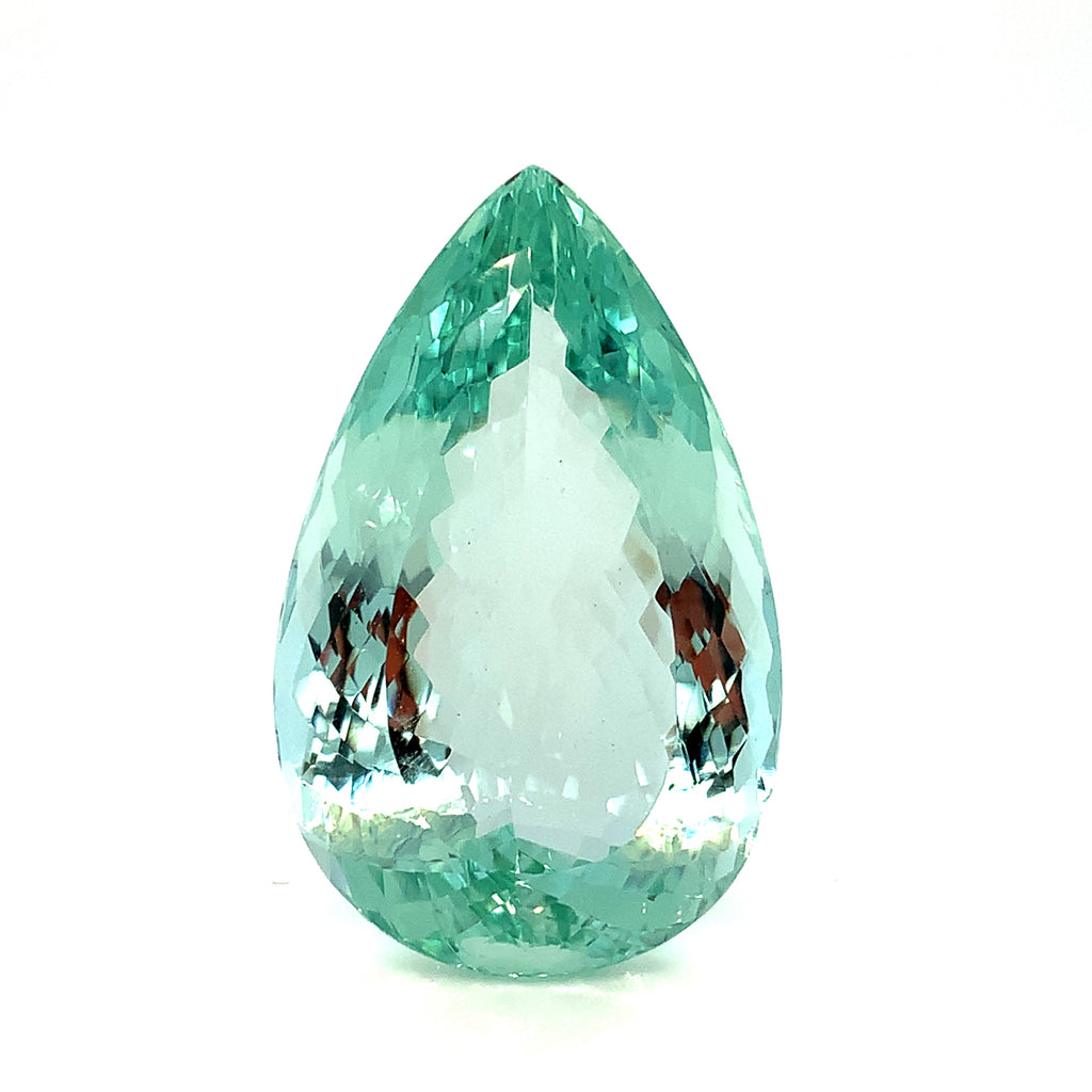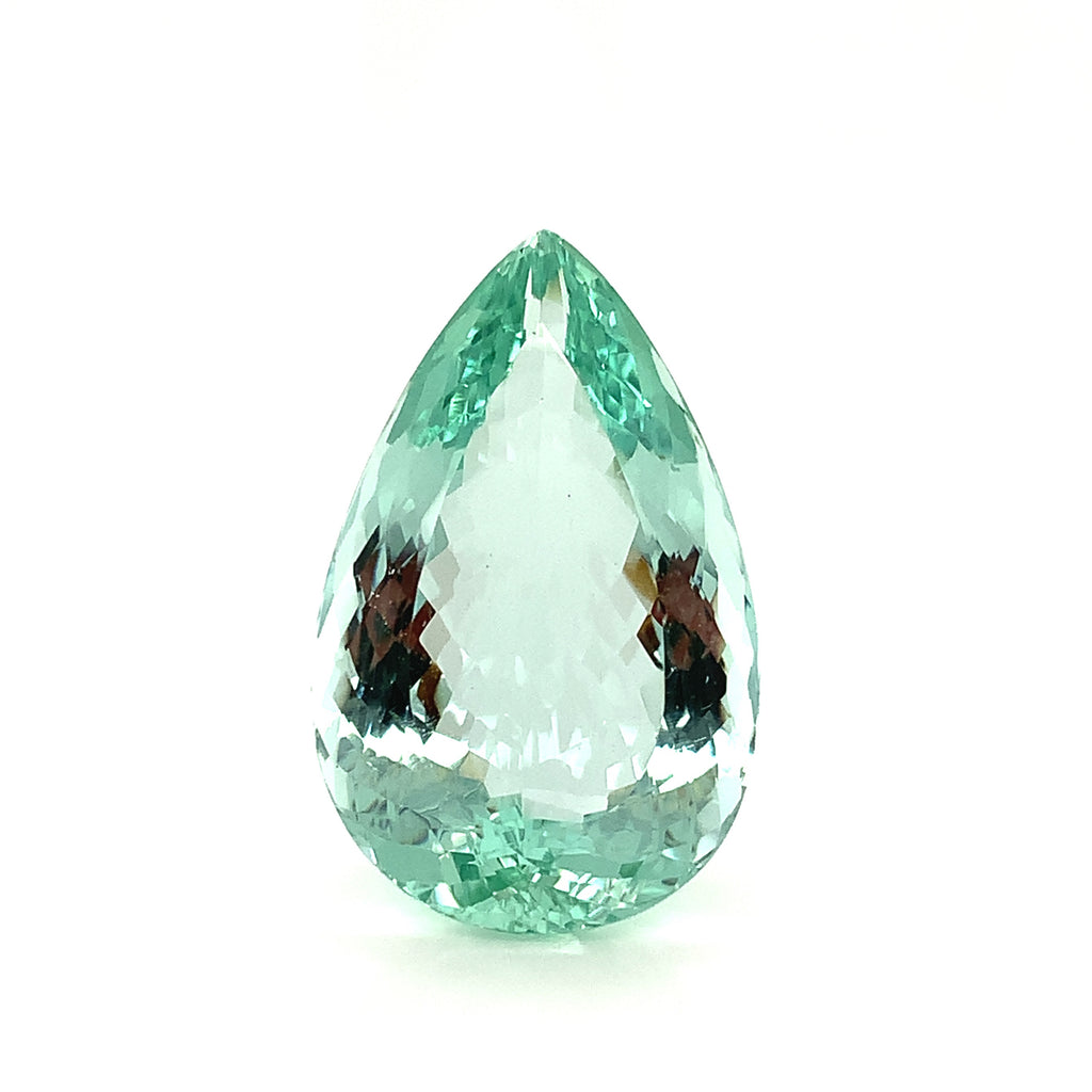 This stunning 57.26 carat pear shaped unheated green beryl has gorgeous, slightly bluish green color and remarkable clarity! Measuring 34.80 x 21.82 x 13.44 millimeters, it is beautifully proportioned with exceptional brilliance and is accompanied by GIA Identification Report #2233568589. This exquisite gemstone would be gorgeous on display - in a bespoke pendant made especially for you!