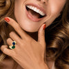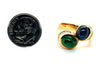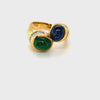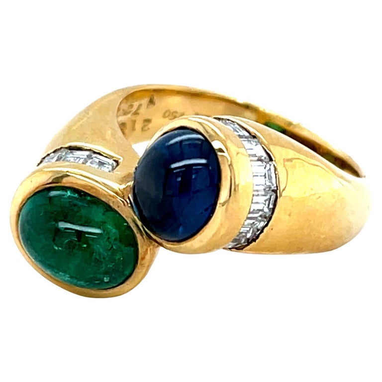 Emerald Cabochon, Sapphire Cabochon and Diamond Baguette Ring in 18k Yellow Gold